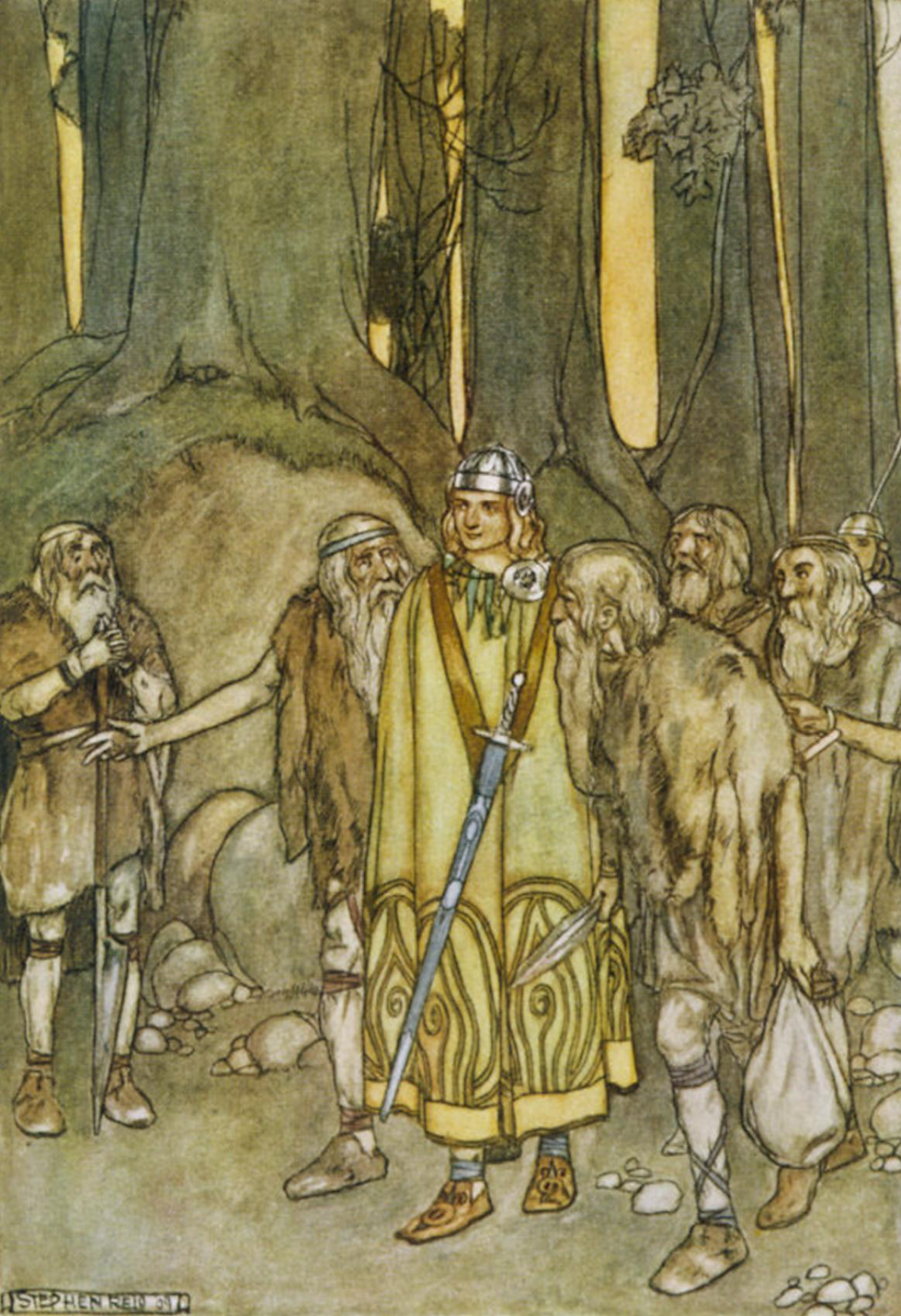 It is said that, after his father’s death, Fionn was raised in secret in the forest of Sliabh Bladhma by Bodhmall, a druidess, and Liath Luachra, a fearless warrior.