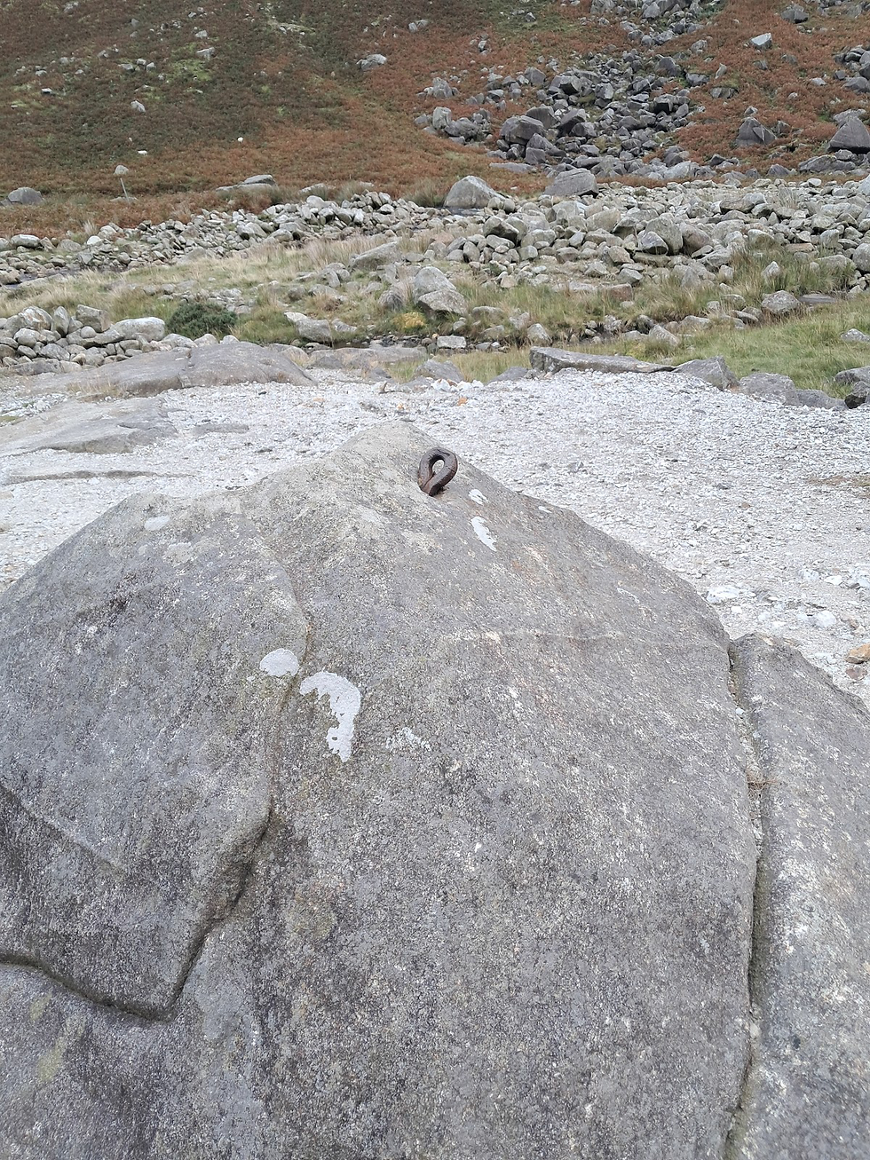 The ruins of the houses at the foot of the mountain are all that remains of what was once the heart of the mining activity that shaped the valley from the early 19th century — the primary processing centre for ore, mostly coming from galleries on the Camaderry Mountain side, in Glendasan.
