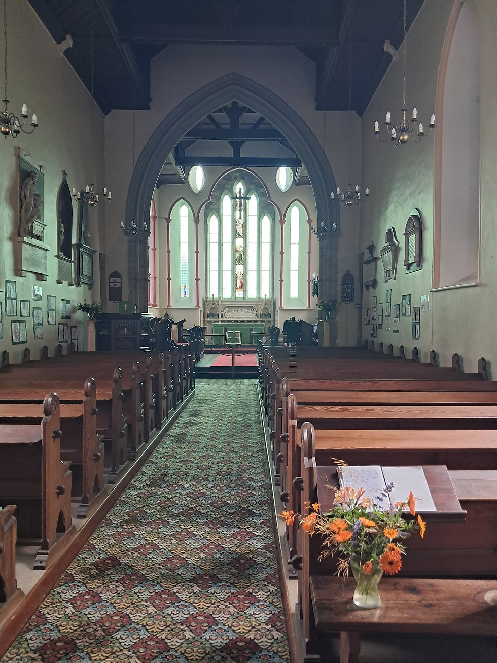 On leaving, the eye rests on a monument that serves as a memorial: a Celtic cross, proud and serene, occupies the centre of the square. Designed by the sculptor John Walsh and erected in 1953, it honours Father John Murphy, who not only guided the parish but took command of the insurgents in the 1798 Rebellion, becoming a symbol of courage and resistance.